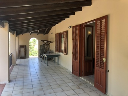 Über die großzügige und überdachte Terrasse, die sich über die ganze Hausfront erstreckt, erreichen Sie den Eingangsbereich. Die ebenerdigen Räumlichkeiten teilen sich in ein Wohn- und Essbereich auf, 1 Küche, 3 Schlafzimmer und 2 Bäder. Etwas versetzt schließt sich an das Haus noch ein weiterer Raum mit Tageslicht an, der derzeit lediglich als Abstellraum genutzt wird. Hier könnte ohne weiteres noch ein weiterer Wohnraum entstehen. Hinter dem Haus befindet sich eine geschützte Außendusche mit einem Waschbecken und Stellplatz für eine Waschmaschine. Auf Wunsch könnten Sie, aufgrund der Beschaffenheit und Größe des Grundstücks, auch einen Pool dazu bauen.